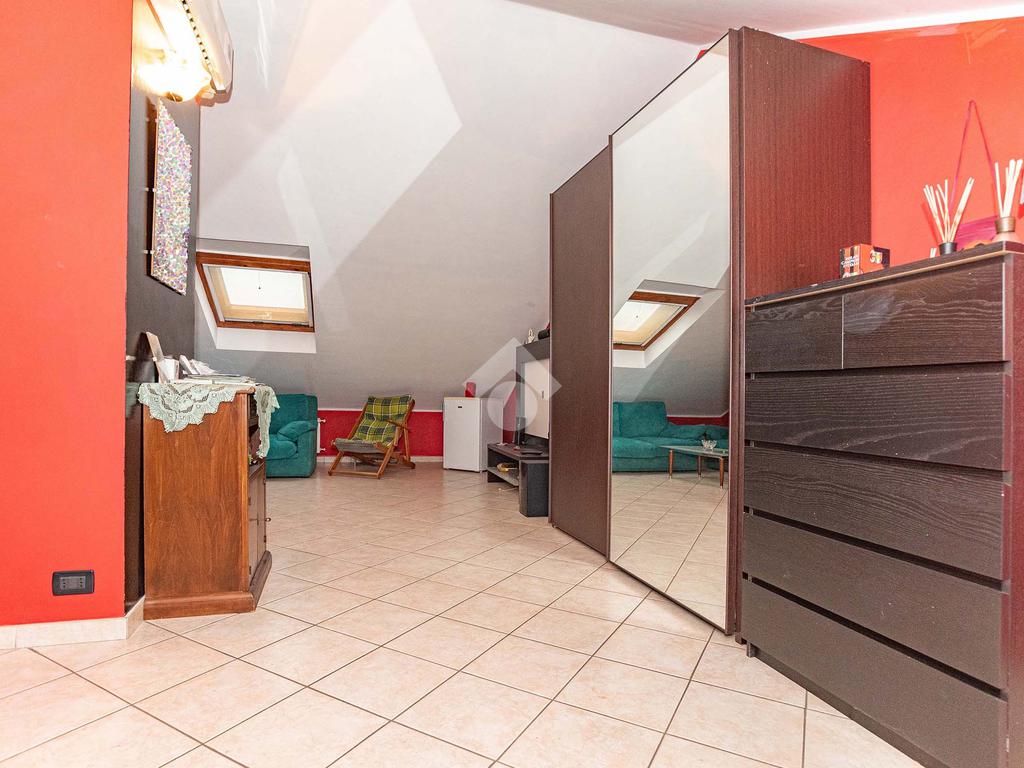 Al piano secondo mansardato è presente una spaziosa camera mansardata, perfetta come terza camera, studio o area hobby.